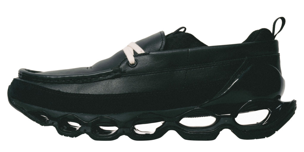 さらに、このシューズはカラーバリエーションとしてシックなブラックを採用しており、どんな服装にも容易に合わせられるため、ファッションの幅が広がります。特にモードなスタイルやテック系のスタイルにもマッチし、そのユニークなデザインは多様なファッションシーンで活躍します。